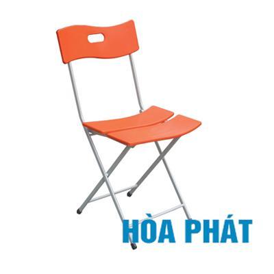 Ghế gấp, đệm tựa nhựa nan hình sóng, khung sắt oval 10 x 20mm. Giằng chân ống thép Ø13.8mm, sơn màu ánh bạc.